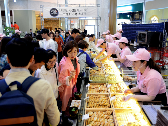 ▲전국적으로 부산의 어묵 브랜드가 인기를 끄는 가운데, 롯데백화점 광복점은 오는 31일 아쿠아몰 지하1층에 부산의 대표 어묵브랜드인 '고래사어묵'이 정식으로 입점한다. 사진은 지난 4월 롯데 광복점에서 열린 고래사어묵 팝업스토어에서 고객들이 붐비는 모습. (사진제공=롯데백화점)