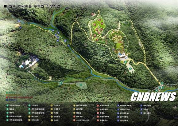 원주시가 시민 휴양과 여가 선용을 위해 문막 동화마을에 수목원을 조성하고 있다.