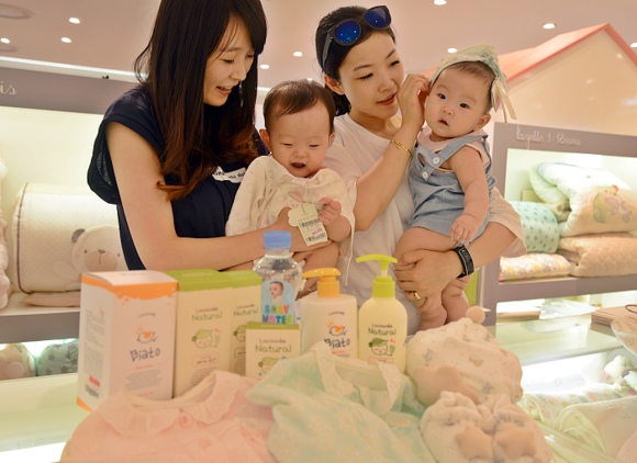 덥고 습한 날씨가 지속되는 가운데 롯데백화점 부산본점 6층 압소바 매장에서는 유기농법으로 재배한 깨끗한 순면 제품들을 선보여 고객들이 살펴보고 있다. 이 제품들은 통풍이 잘 돼 아이들의 연약한 피부인 땀띠 예방 효과가 있어 내의, 모자 앙먈, 겉싸게 등 다양한 제품에 적용되고 있다. (사진제공=롯데백화점 부산본점)