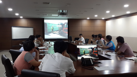 캠페인 후, 부산신항국제터미널 회의실에서 대형사고 예방에 대한 경각심과 자율적인 재해예방 활동을 다짐하는 대형 선박물류업체 재해예방 회의가 열렸다.