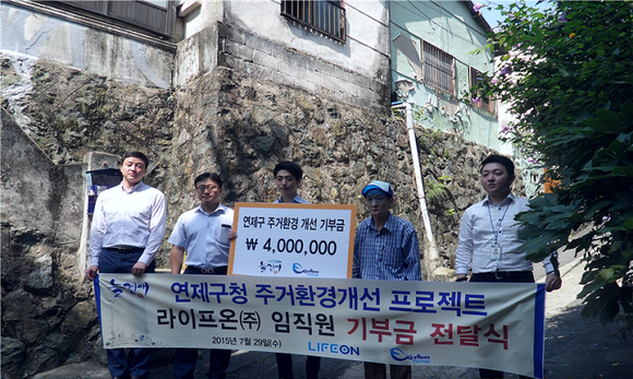 연제구는 최근 라이프온(주) 늘곁애(구 부산상조) 임직원들이 자발적으로 모금한 400만원의 기부금으로 취약계층 5세대에 도배, 장판교체, 누수방지공사, 슬레이트 지붕교체 작업을 실시했다고 2일 밝혔다.
