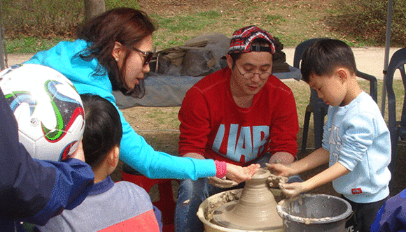 ▲초등학생들이 도자기 만들기 체험을 하고 있다 (사진=성남문화재단)