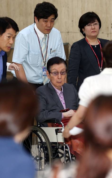 ▲롯데그룹 신격호 총괄회장이 28일 오후 서울 김포국제공항을 통해 귀국하고 있다.(사진=연합뉴스)