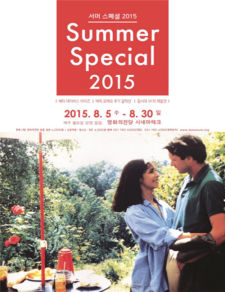 이번 '서머 스페셜 2015'는 23편의 명작들과 함께해 8월 30일까지 계속되며, 관람료는 일반 6천원, 회원포함 청소년 및 경로는 4천원이다(월요일은 상영 없음). 박인호 영화평론가의 시네도슨트 일정과 상영작 정보는 영화의전당 홈페이지(www.dureraum.org) 참조.