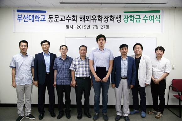 부산대학교(총장 김기섭) 출신 교수들로 구성된 '부산대 동문교수회(회장 이행봉·정치외교학과 교수)'는 열정과 잠재력을 지닌 부산대 후배 학생들의 글로벌 유학을 통한 우수인재로의 성장을 돕기 위해 '동문교수회 해외유학장학생' 장학제도를 신설, 지난달 27일 첫 장학금 수여식을 가졌다고 3일 밝혔다.