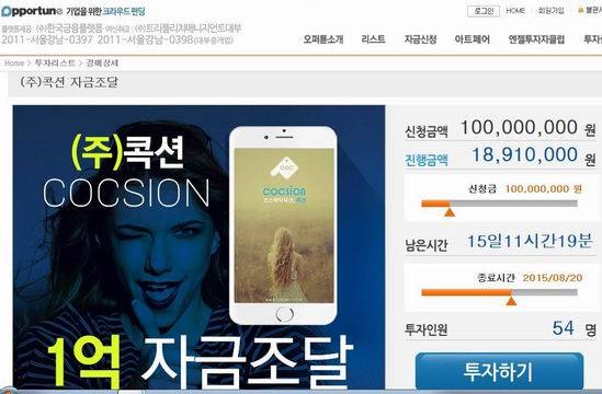 ▲한 업체의 크라우딩펀딩 소개 화면. 플랫폼(중개) 업체가 중소·벤처기업 상품을 게시하면 투자자들이 십시일반으로 자금을 투자하는 시스템이다.
