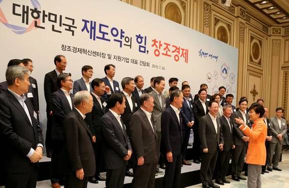 지난달 24일에는 청와대에 재계 총수들을 전부 불러놓고 창조경제에 대해 2시간 가까이 열띤 토론을 벌이기도 했다. 정몽구 현대자동차그룹 회장, 구본무 LG그룹 회장, 김창근 SK수펙스추구협의회 의장, 조현상 효성그룹 부사장, 권오준 포스코 회장, 손경식 CJ그룹 회장, 신동빈 롯데그룹 회장, 황창규 KT 회장, 박용만 두산그룹 회장, 김상헌 네이버 대표이사, 김승연 한화그룹 회장, 김범수 다음카카오 이사회 의장, 서경배 아모레퍼시픽그룹 회장, 최길선 현대중공업그룹 회장, 조양호 한진그룹 회장 등 대기업 총수 17명이 참석했다.