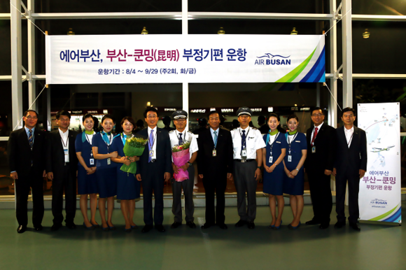 실용 항공사 에어부산(대표 한태근)은 4일 김해국제공항에서 중국 쿤밍(곤명)으로 가는 부정기편을 취항했다고 5일 밝혔다.