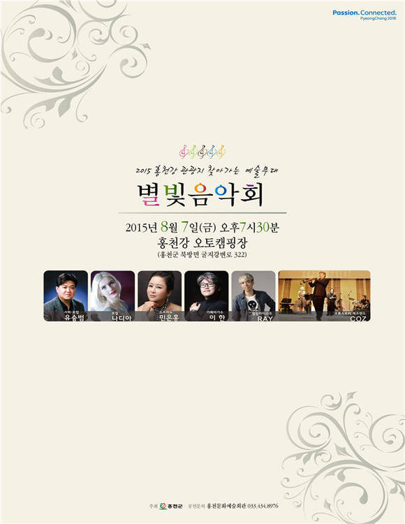 군 관계자는 홍천강 별빛콘서트를 통해 홍천군을 찾는 관광객에게 아름다운 별빛 추억을 선사하고 다시 오고 싶은 문화예술 관광도시로 발전시키는 계기가 되길 바란다 "고 전했다.