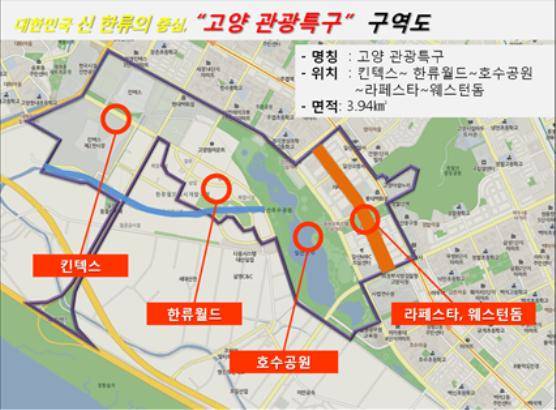 고양시는 지난 6일 킨텍스에서 한류월드와 호수공원, 라페스타와 웨스턴돔 일대를 가로지르는 3.94㎢ 지역이 '관광특구'로 지정됐다고 밝혔다.