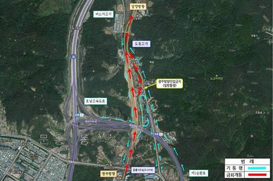 기존 광주에서 담양으로 가기 위해 이용한 도로는 일부 구간이 일방통행으로 변경돼 담양에서 광주로의 진입은 금지된다.