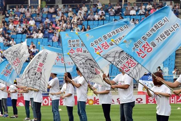 수원시가 수원삼성블루윙즈와 손잡고 12일 수원월드컵경기장에서 2017 FIFA U-20 월드컵 수원 유치기원 시민한마당 대회를 개최했다.