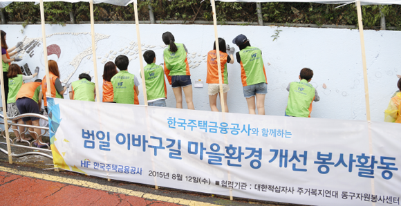 주택금융공사(HF, 사장 김재천)는 부산 동구청, 동구자원봉사센터, 대한적십자사 부산지사, 사단법인 주거복지연대와 공동으로 마을환경개선 사업을 진행했다고 12일 밝혔다.