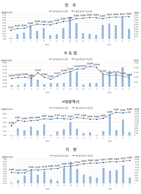 6대광역시(+0.47%) 및 지방(+0.53%)의 평균 분양가격은 전월 대비 상승한 반면, 서울(-1.21%)및 수도권(-0.7%)은 하락한 것으로 조사됐다.