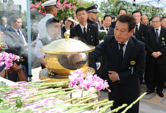 ▲윤장현 광주광역시장은 18일 오전 국립현충원에서 열린 김대중 전 대통령 서거 6주기 추모식에 참석해 헌화하고 있다.(사진=광주광역시)