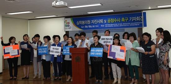 고양시의회 새정치민주연합 의원들은 18일 고양시의회에서 기자회견을 열고, 최근 발생한 심학봉 의원의 성폭행 사건에 대해 대구경찰청이 ‘혐의 없음’ 의견으로 검찰에 송치한 것과 관련해 이번 경찰 수사가 '부실 수사·봐주기 수사'라는 의혹을 제기했다. 이번 성명서 발표에는 새정치민주연합 고양시 4개지역여성위원회, 고양시의회정의당, 고양파주여성민우회, 고양여성단체협의회, 고양시민회 등도 함께 참여했다.