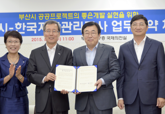 부산시(시장 서병수)와 한국자산관리공사(캠코, 사장 홍영만)는 19일 오전 11시 부산시청 7층 국제의전실에서 시 유휴 공유지 등 우선적으로 위탁개발 추진 가능한 사업을 선정해 상호 ▲주요 공공개발 대상사업에 대한 자료 미 정보 공유 ▲사업 타당성 분석 및 사업 추진구조 제안 ▲민간 기업 유치를 위한 홍보를 지원하는 '부산시 공공프로젝트의 좋은 개발 실현을 위한 업무협약'을 체결했다.