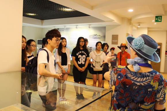 ▲부산외대 '함께 하는 부산 인문학 탐방' 팀원과 금샘지역아동센터 중학생들이 지난 1일 부산근대역사관을 방문한 가운데, 역사관 관계자로부터 부산의 일제 강점기 및 발전상에 대한 설명을 듣고 있다. (사진제공=부산외대)