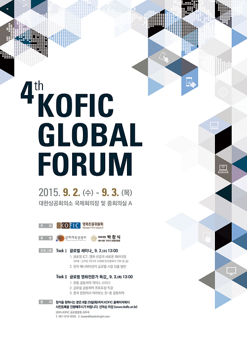 영화진흥위원회(위원장 김세훈)가 주최하고 문화체육관광부, 국회 교육문화체육관광위원회 박창식 국회의원이 후원하는 '제4회 KOFIC 글로벌 포럼'이 9월 2일부터 3일까지 서울 대한상공회의소에서 개최된다.