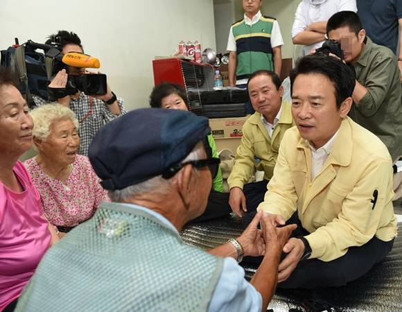남 지사는 이날 예정돼 있던 오전 일정을 취소하고 주민들이 대피해 있는 중면 면사무소와 횡산리 주민대피소(마을회관)를 잇따라 방문해 “대피 상황이 힘들더라도 조금만 더 힘을 내시라고 위로하고 물 샐 틈 없이 대비해 주민들께서 더 이상의 피해를 입지 않도록 하겠다”고 약속했다.