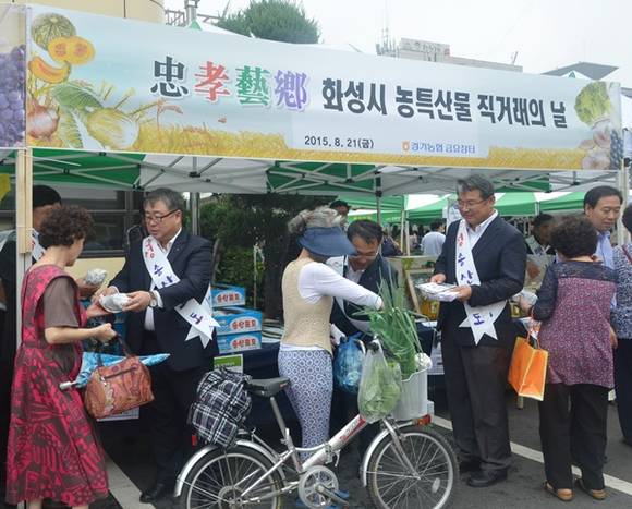 농협중앙회 경기지역본부(본부장 오경석)는 지난 22일 지역본부 금요장터에서 이응구화성시농정과장, 김학균농협화성시지부장, 한기연송산농협조합장, 농협임원이 참석한 가운데 화성시 농축산물 직거래 특별장터를 열었다.