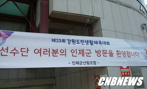 앞서 농협중앙회 인제군지부와 인제농협, 인제축협, 신남농협, 기린농협, 산림조합과 인제농협 원통지점 등 7개 건물에 대형 현수막을 내붙여 체전 분위기를 띄우고 있다.