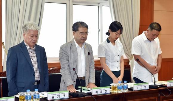▲세월호 희생자 영령을 위한 묵념을 하고 있는 이재정 경기도교육감(사진=경기도교육청)
