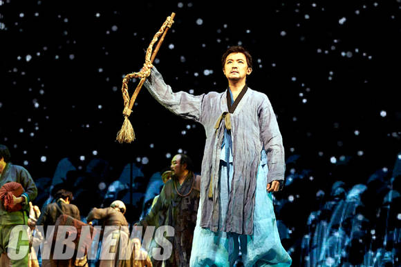 뮤지컬 '아리랑'의 한 장면. 극 중 독립 운동을 이끌어가는 중심 인물인 송수익 역의 배우 안재욱이 열연 중이다. 공연은 조정래의 동명 소설을 원작으로, 일제 강점기 시절 한민족의 끈질긴 생존과 투쟁 역사를 다룬다. 공연은 LG 아트센터에서 다음달 5일까지.