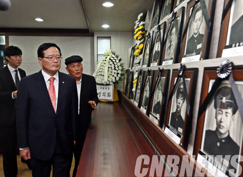 정의화 국회의장이 8월 26일 오후 광주 동구 계림동에 위치한 4.19 혁명기념관을 방문해 참배를 하고 있다. (사진=국회)