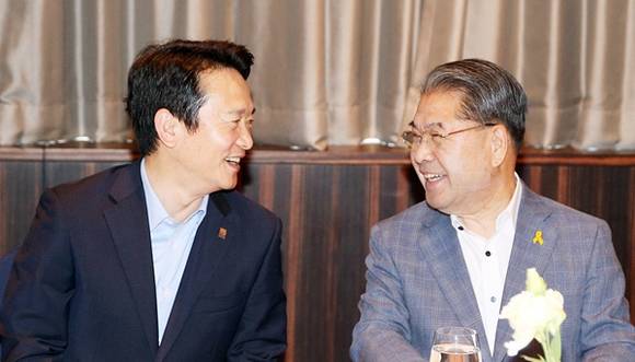 ▲남경필 경기도지사와 이재정 경기도교육감이 환담을 나누고 있다.