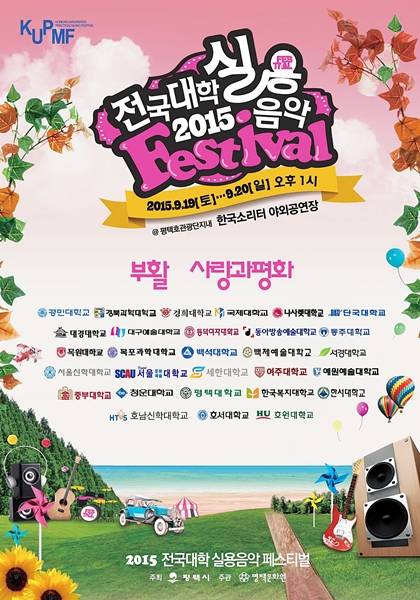 2015 전국 대학 실용음악 페스티벌이 오는 9월19과 20일 경기도 평택의 평택호 관광단지내 한국 소리터 야외 공연장에서 평택시, 평택문화원의 주최로 열린다.