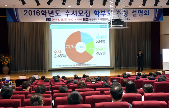 부경대학교 입학관리본부(본부장 채영희)는 수시모집을 2주 앞둔 28일 오후 대학본부 2층 대회의실에서 2016학년도 수시모집 대비 학부모 초청 입학설명회를 열었다.