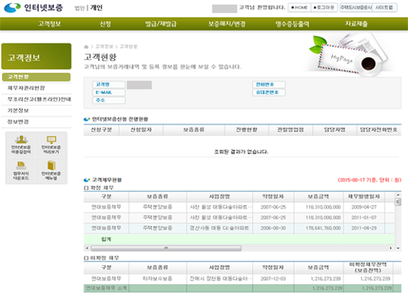 ▲개인고객 채무내역 조회 서비스 화면. (사진제공=HUG)