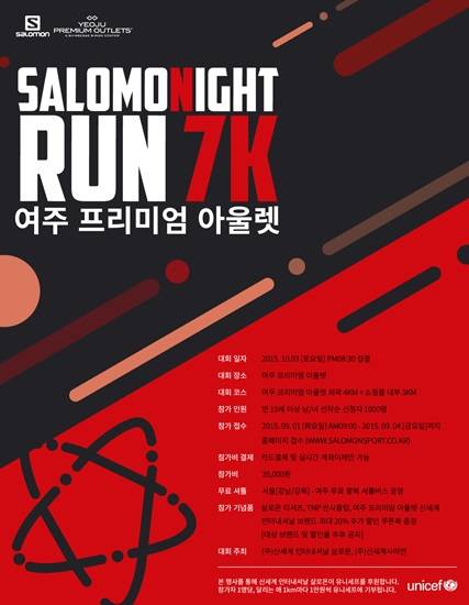 이번 행사는 여주 프리미엄 아울렛 매장 내부 3km와 외곽 4km 등 총 7km 코스를 달리는 야간 러닝 행사로 9월 1일부터 살로몬 공식 홈페이지(www.salomonsport.co.kr)를 통해 1천 명 선착순으로 접수를 진행한다. 참가비는 3만 5천원이다. 살로몬 나이트 런 행사는 러닝, 쇼핑, 클럽문화가 결합된 새로운 형태의 놀이문화라는 점에서 업계의 이목을 끌고 있다. 특히 스포츠 브랜드에서 야간 러닝 행사를 진행한 사례는 종종 있었지만, 폐점 후 텅 빈 쇼핑몰을 무대 삼아 달리는 것은 살로몬 나이트 런이 최초다.