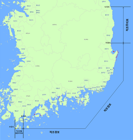 서영상 수산해양종합정보과장은 “특보가 해제될 때까지 가두리 양식장에서는 먹이공급 중단, 산소공급장치 전면 가동 등의 조치가 지속적으로 필요하다”며 “육상양식장에서도 야간 취수 제한, 인입수의 적조생물 확인 그리고 산소 공급 확대 등에 만전을 기해야 한다”고 당부했다.