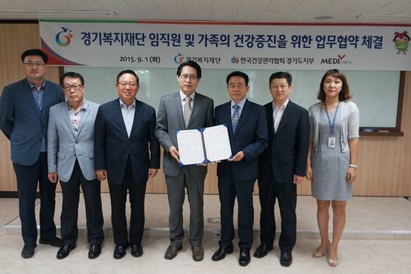 경기복지재단(대표이사 박춘배)은 한국건강관리협회 경기도지부(부본부장 김행수)와 1일 경기복지재단에서 재단 임직원 및 가족의 건강증진을 위한 업무협약을 체결했다.