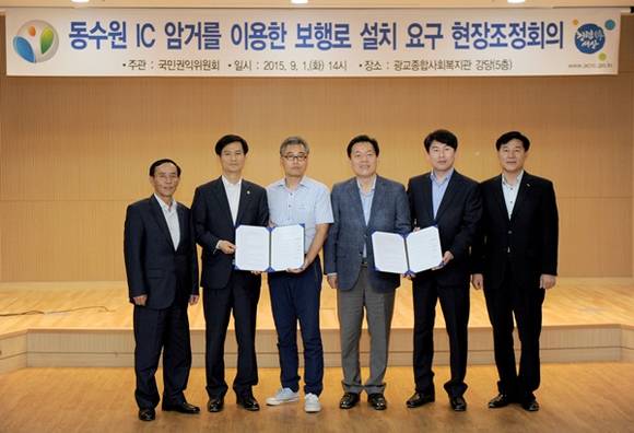 국민권익위원회(위원장 이성보)는 영동고속도로 동수원 IC아래 기존 지하통로를 이용해 마을과 대형마트 사이에 보행로를 개설해달라는 수원 광교 주민 223명의 집단민원을 중재해 해결방안을 마련했다.