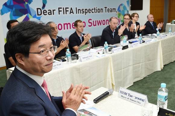 오는 2017년 한국에서 열리는 FIFA U-20 월드컵 개최 후보도시 선정을 위해 FIFA 실사단이 2일 오전 수원을 방문했다.