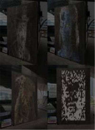 네 가지인 제너러티브 아트 작품은 빈 공간에 선과 줄기 등이 뻗어나가 마지막에 화면 가득 영화배우, 영화 주인공 등의 이미지로 완성된다.