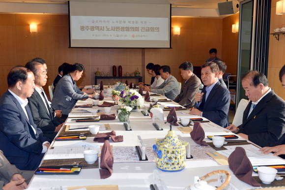 광주광역시는 7일 오전 지역 각계각층의 대표들이 참여하는 노사민정협의회 긴급회의를 소집해 금호타이어 사태 해결방안을 논의하고 즉각적인 협상을 촉구하는 성명서를 발표했다.