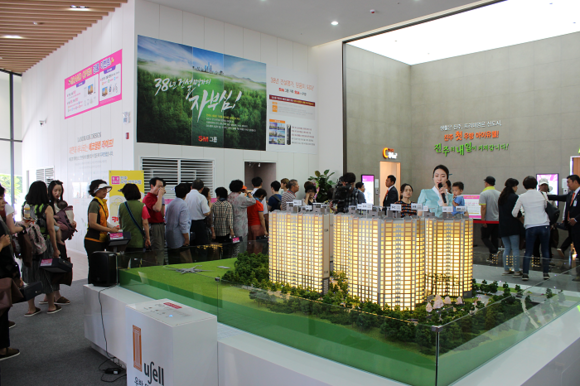 좀처럼 흥분하지 않던 조용한 진주 시내가 9월 첫 주말을 맞아 크게 들썩 거렸다. 바로 SM(주)건설의 '항공신도시 우방 아이유쉘' 견본주택에 오픈 3일간(9/4~6) 총 3만2천여 명이 방문한 것.
