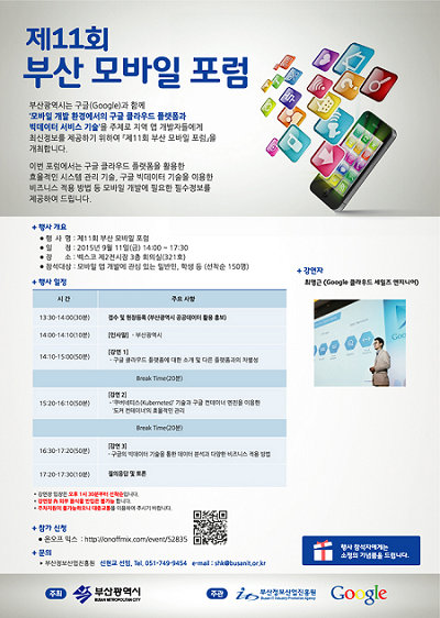 이번 포럼은 부산시가 주최하고 부산정보산업진흥원과 구글(Google)이 공동으로 주관한다. 올해 11회째를 맞이한 이번 포럼은 최신 클라우드 플랫폼을 활용한 효율적인 시스템 관리기술과 빅데이터 기술을 이용한 새로운 비즈니스 모델 적용 방법을 공유할 수 있는 장으로 평가되고 있다.