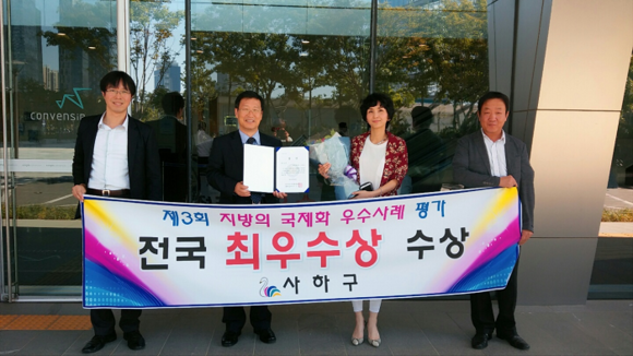 부산 사하구(구청장 이경훈)가 9일 인천에서 열린 전국시도지사협의회 주최 '2015년도 지방의 국제화 우수사례 공모전'에서 전국 최우수상을 수상했다.