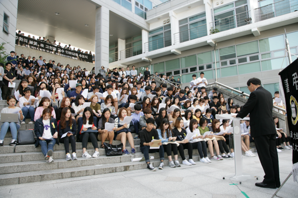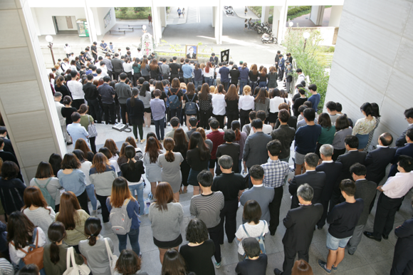 부산대학교 故 고현철 교수 인문대학 추모식이 10일 오후 3시 30분 인문대학 교수연구동 중앙계단에서 동료 교수 및 학생들과 직원 등 500여 명이 참석한 가운데 엄숙한 분위기에서 개최됐다.