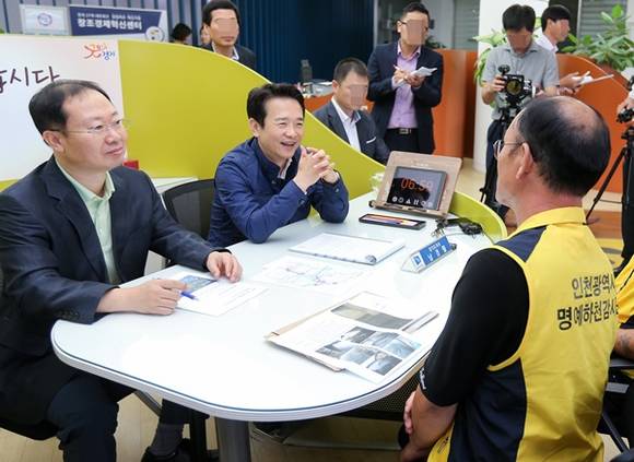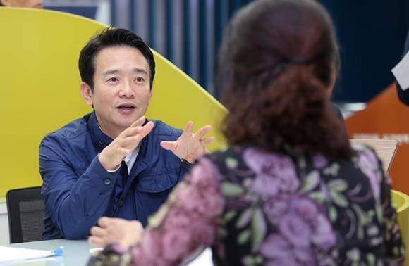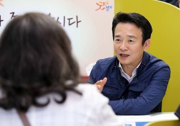 ▲도민의 민원을 청취하고 있는 남경필 경기도지사(사진=경기도)