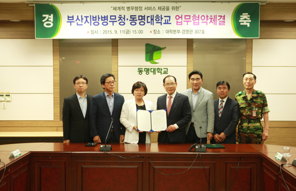동명대학교(총장 설동근)는 대학생들의 원활한 병역이행 지원과 새로운 병역문화 창조를 위해 부산지방병무청(청장 홍승미)과 11일 오후 3시 대학본부307호에서 MOU를 체결했다.