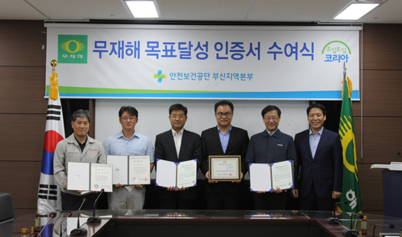 안전보건공단 부산지역본부(본부장 심재동)는 15일 오후 본부에서 동부부산컨테이너터미널(주) 등 3개 사업소에 무재해 인증서를 수여하고 유공 직원을 표창했다.