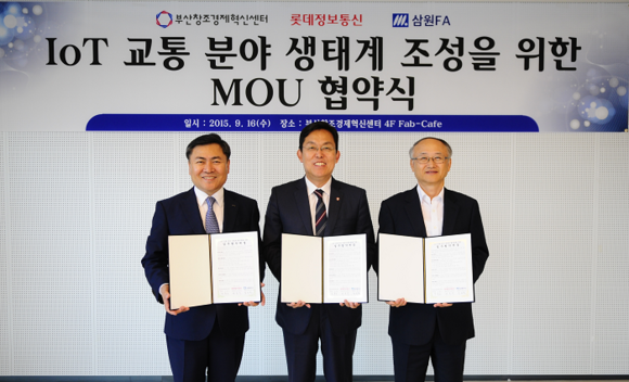 부산창조경제혁신센터(센터장 조홍근, 이하 부산창조센터)는 롯데정보통신(대표이사 마용득), 삼원에프에이(대표이사 홍원표)와 16일 스마트시티 사업의 일환으로 IoT 교통 분야 생태계를 활성화하고, 부산지역 기업육성에 공동 협력하기 위한 업무협약을 체결했다.