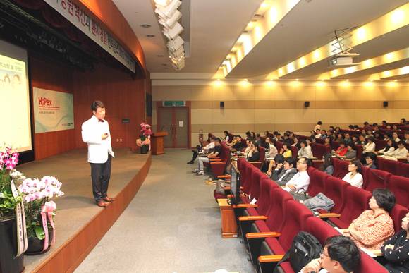 ▲명지병원 이왕준 이사장이 컨퍼런스에서 개막 강의를 진행하고 있다.(사진= 명지병원)
