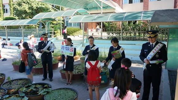 수원남부경찰서(경무관 유진형)는 17일 오전 원천초등학교 정문에서 학생과 시민들을 대상으로 경찰관,어머니폴리스,교장 등 관계자 90여명이 참여한 가운데 웃음가득․행복가득 안전한 학교 만들기 및 4대 사회악 근절 홍보 캠페인을 펼치며 등교하는 학생들에게 홍보물을 나눠주었다.
